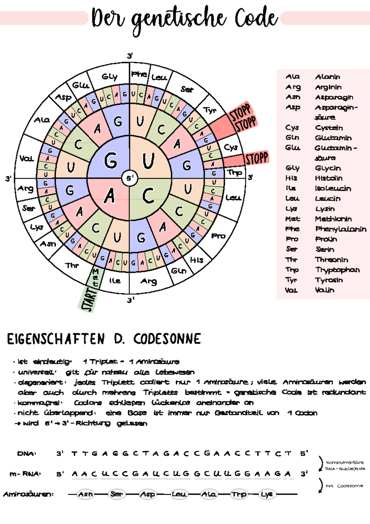 Genetischer Code / Code Sonne [Eigenschaften] - DNA in Aminosäuren ...