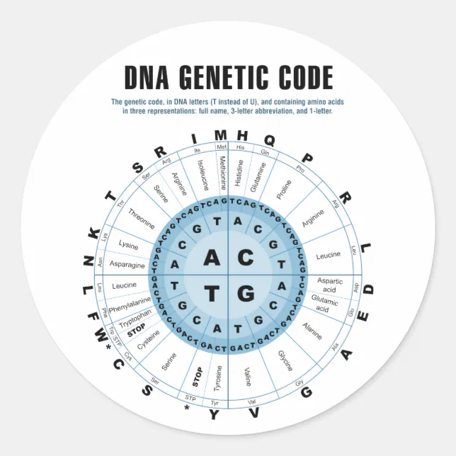 DNA Genetic Code Chart Classic Round Sticker | Zazzle