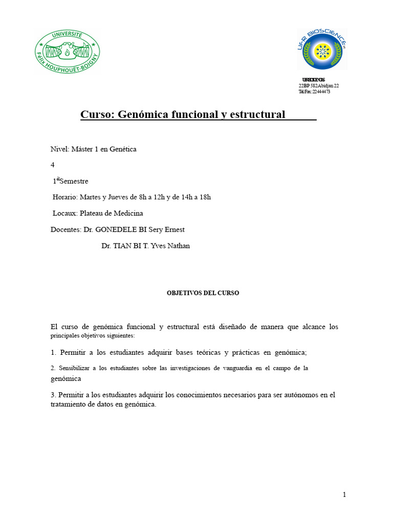 Curso - Genomía Funcional y Estructural - Drs GONEDELE & TIAN BI | PDF ...