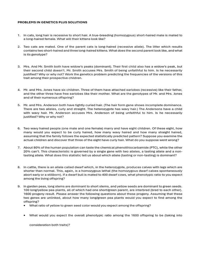 Problems in Genetics Plus Solutions | PDF | Dominance (Genetics) | Zygosity
