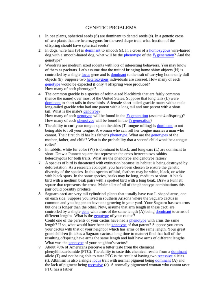 Genetics Problems Part1 W22 - Genetics Problem Set: Part 1 The ...