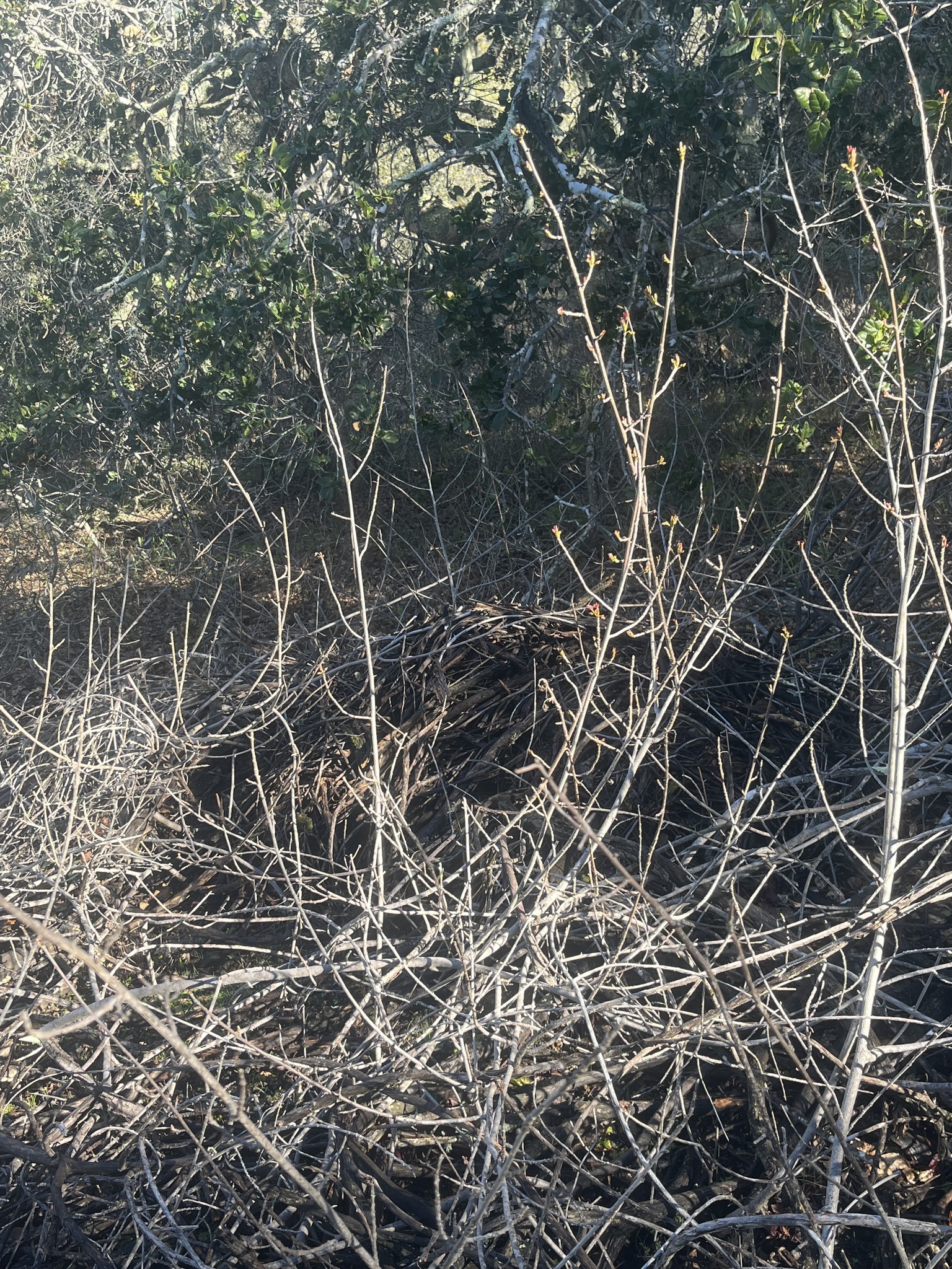 Nest of Dusky-footed Woodrat, Neotoma fuscipes, at Point Lobos State ...