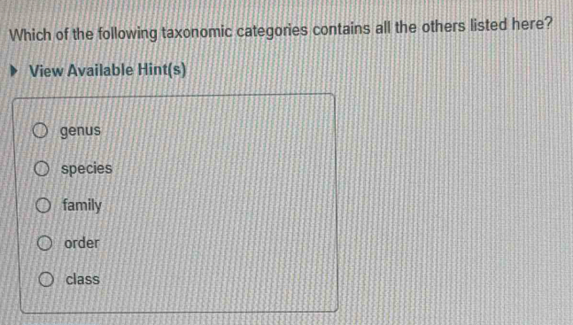 Solved: Which of the following taxonomic categories contains all the ...