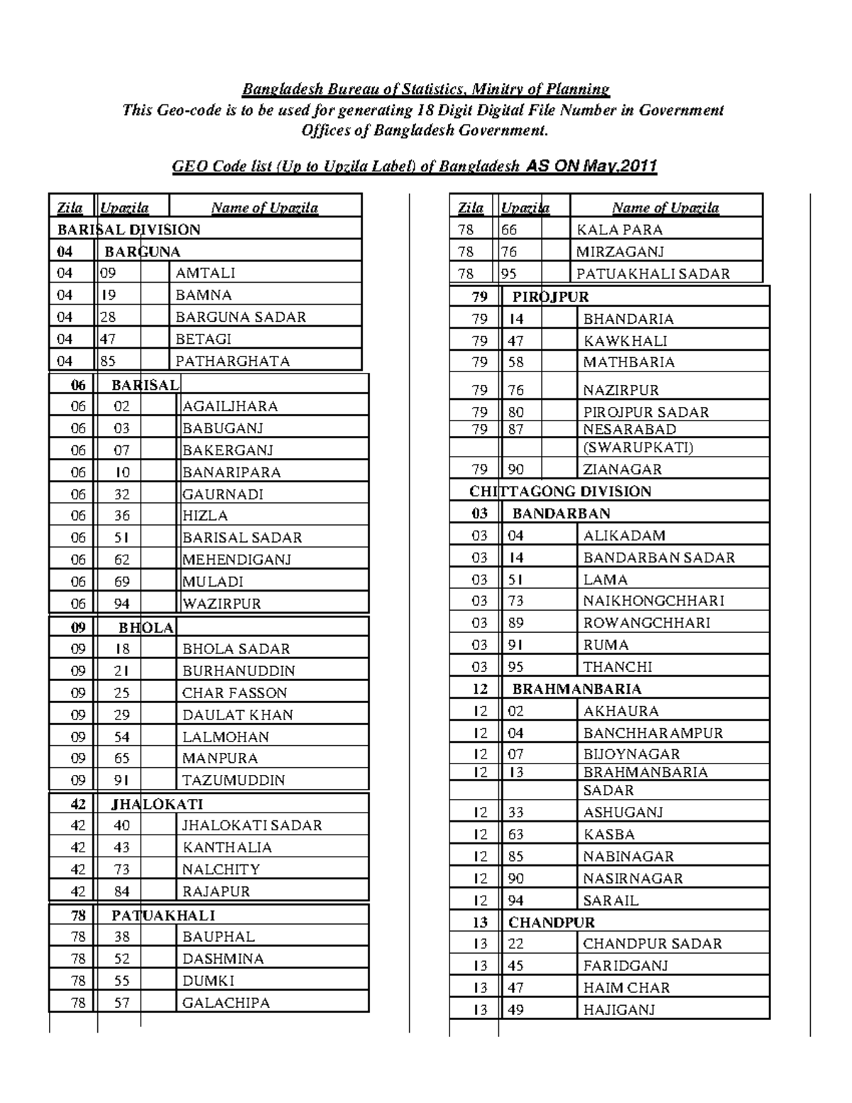 Geo Code List for Bangladesh Unions | PDF | Bangladesh