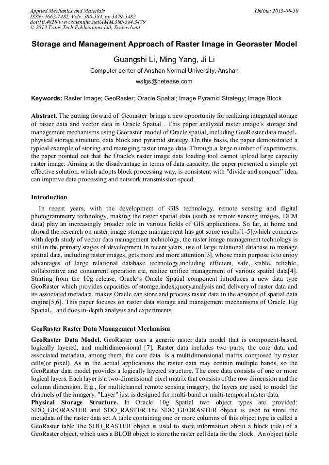 Storage and Management Approach of Raster Image in Georaster Model ...
