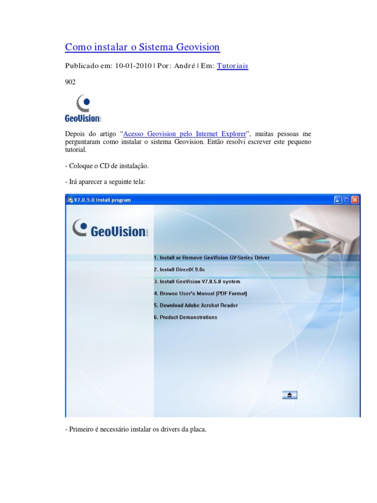 Como Instalar o Sistema Geovision | PDF | Endereço de IP | Internet