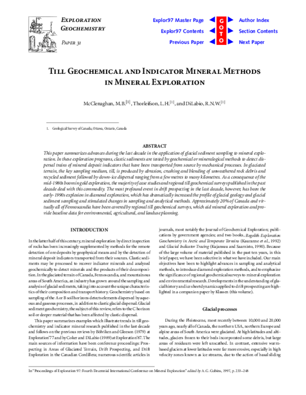 (PDF) Till geochemical and indicator mineral methods in mineral exploration