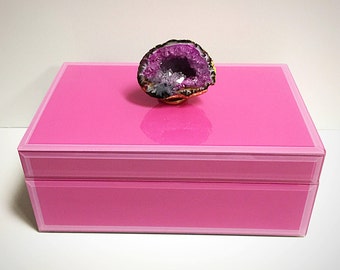 Hand Painted Geode Jewelry Box, Agate Art Keepsake Box, Pink Gold ...
