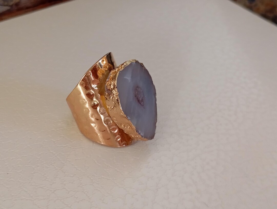 Raw Lace Agate Geode Adjustable Finger Ring, Antique, Bohemian Healing ...