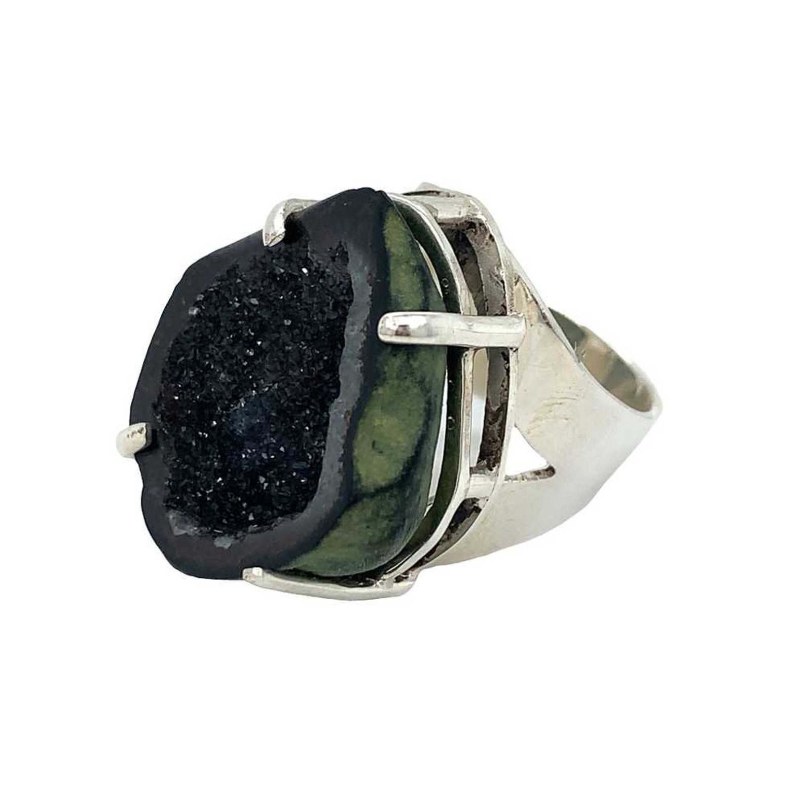 Artisan Sterling Silver Prong Set Geode Ring - Size 8 Finger Jewelry - Etsy