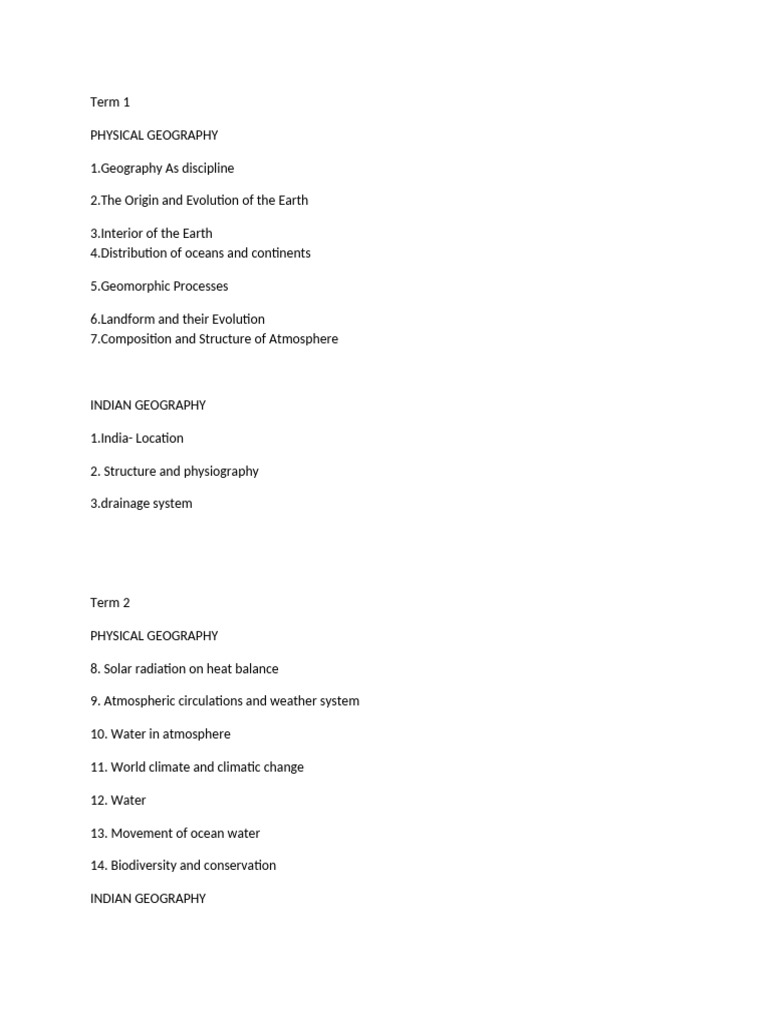 Geography for General Studies Detailed Contents List - Geography for ...