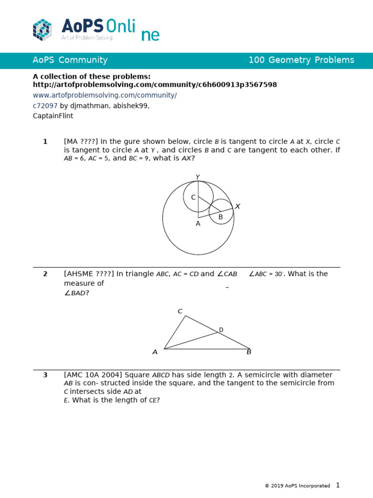 Aops Community 100 Geometry Problems: A Collection of These Problems | PDF