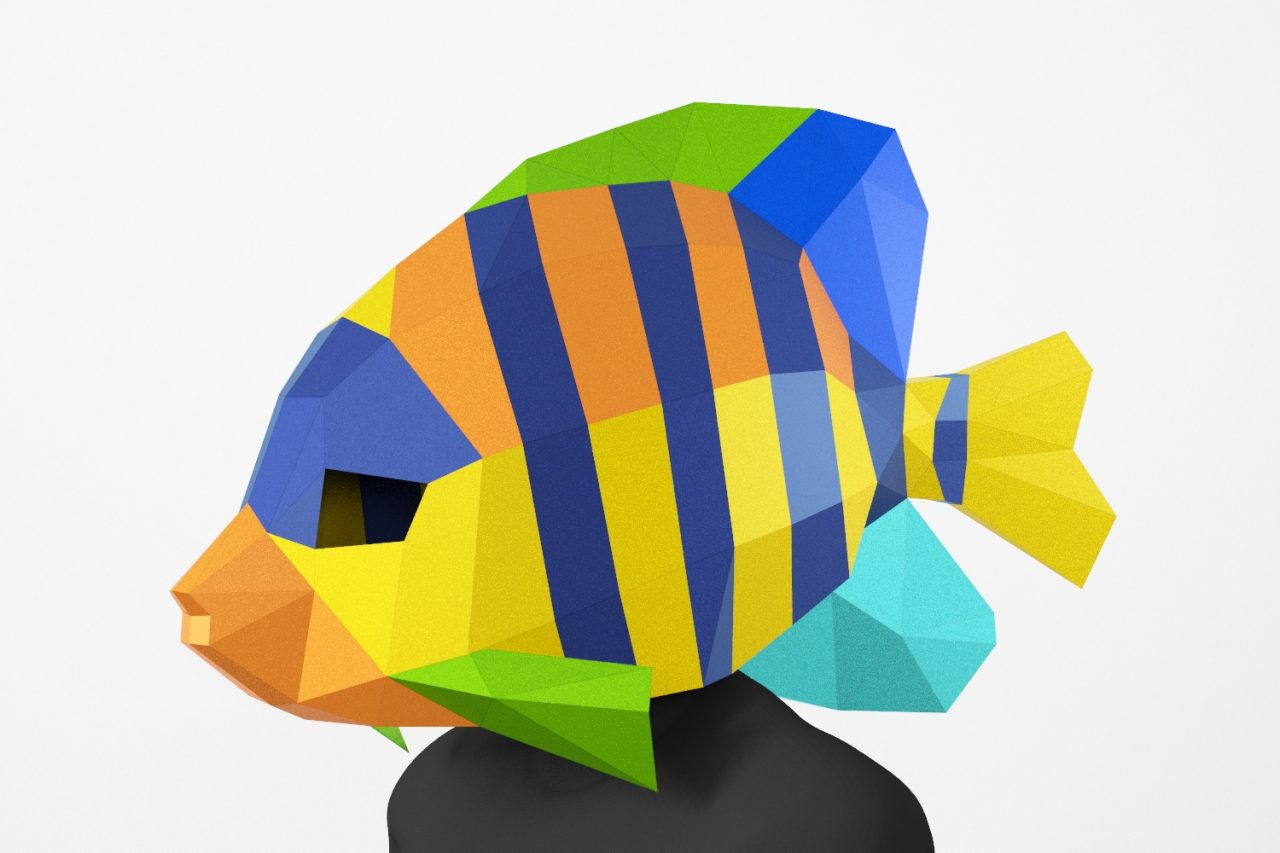 Fish Mask DIY, Low Poly Mask Fish, Paper Craft Mask Fish, Pdf Template ...