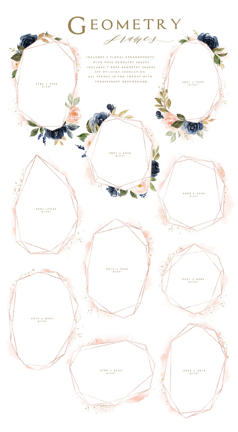 Rose Gold Geometry Frame Clipart Geometry Frames/small - Etsy