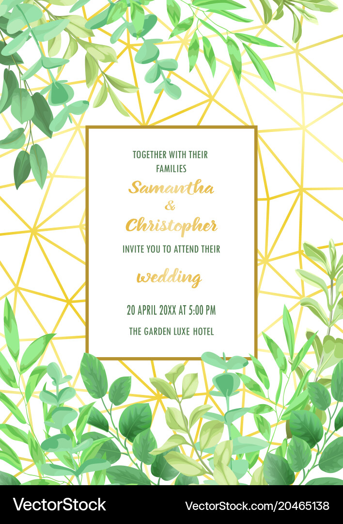 Golden geometric frame luxury wedding invitation Vector Image