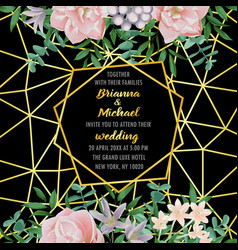 Wedding invitation with geometric frame flowers Vector Image