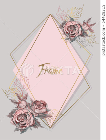 Floral Wedding Invitation Geometric Gold Frame Stock Vector (Royalty ...