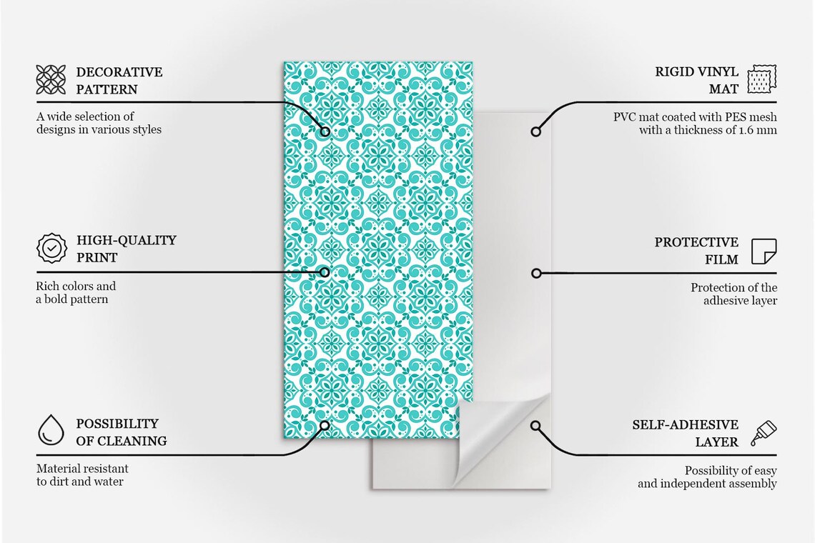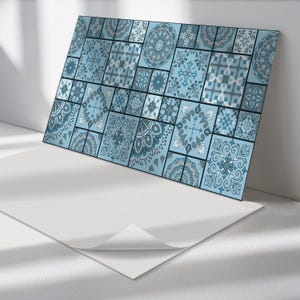 Geometric Mosaic Panel Stickers, Blue Removable Panels, Splashback ...
