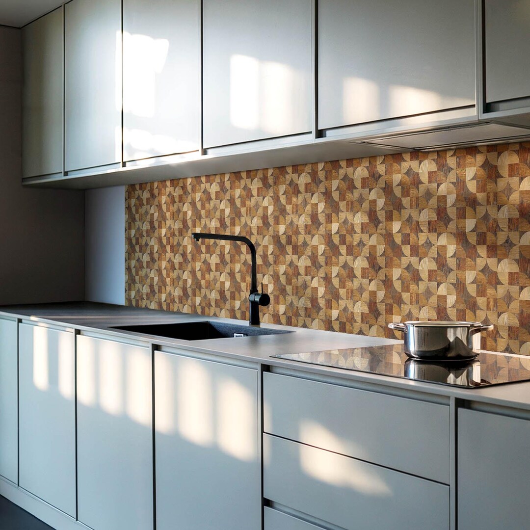 Geometric Wood Panel Stickers, Brown Peel and Stick Panels, Backsplash ...