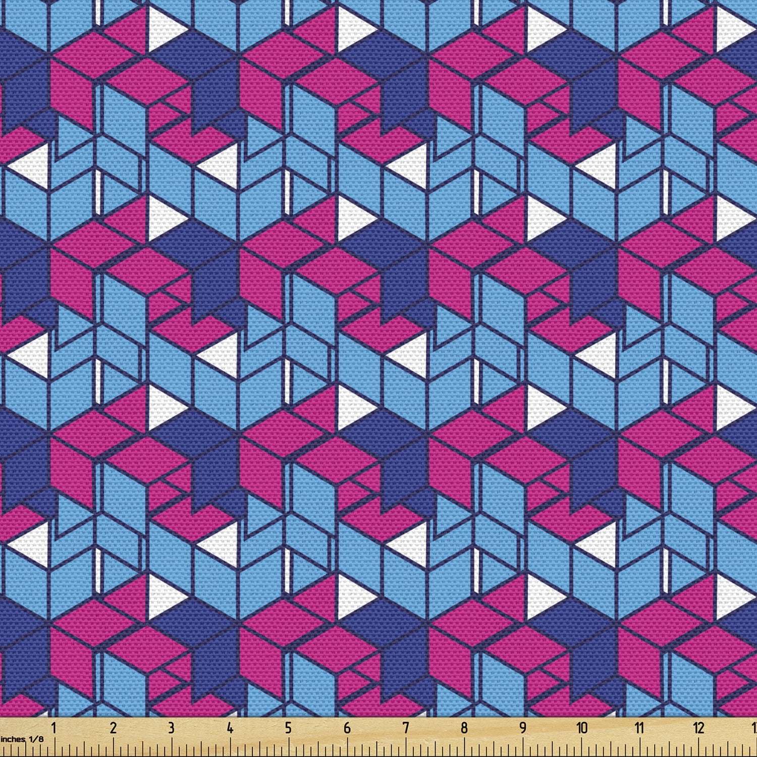 Geometric Fabric by the Yard Upholstery, Retro Style Colorful Cubes ...