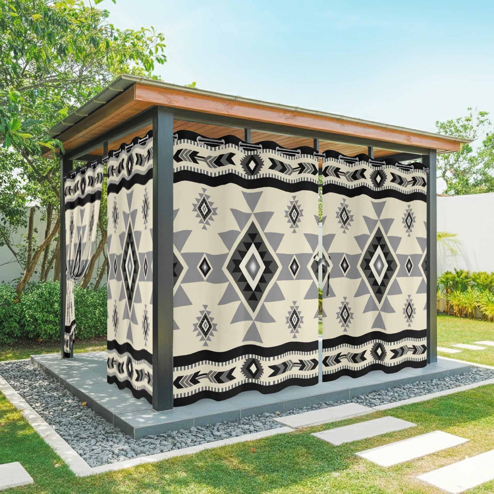 Black Black Pattern Outdoor Curtains for Patio, Retro Bohemian Square ...