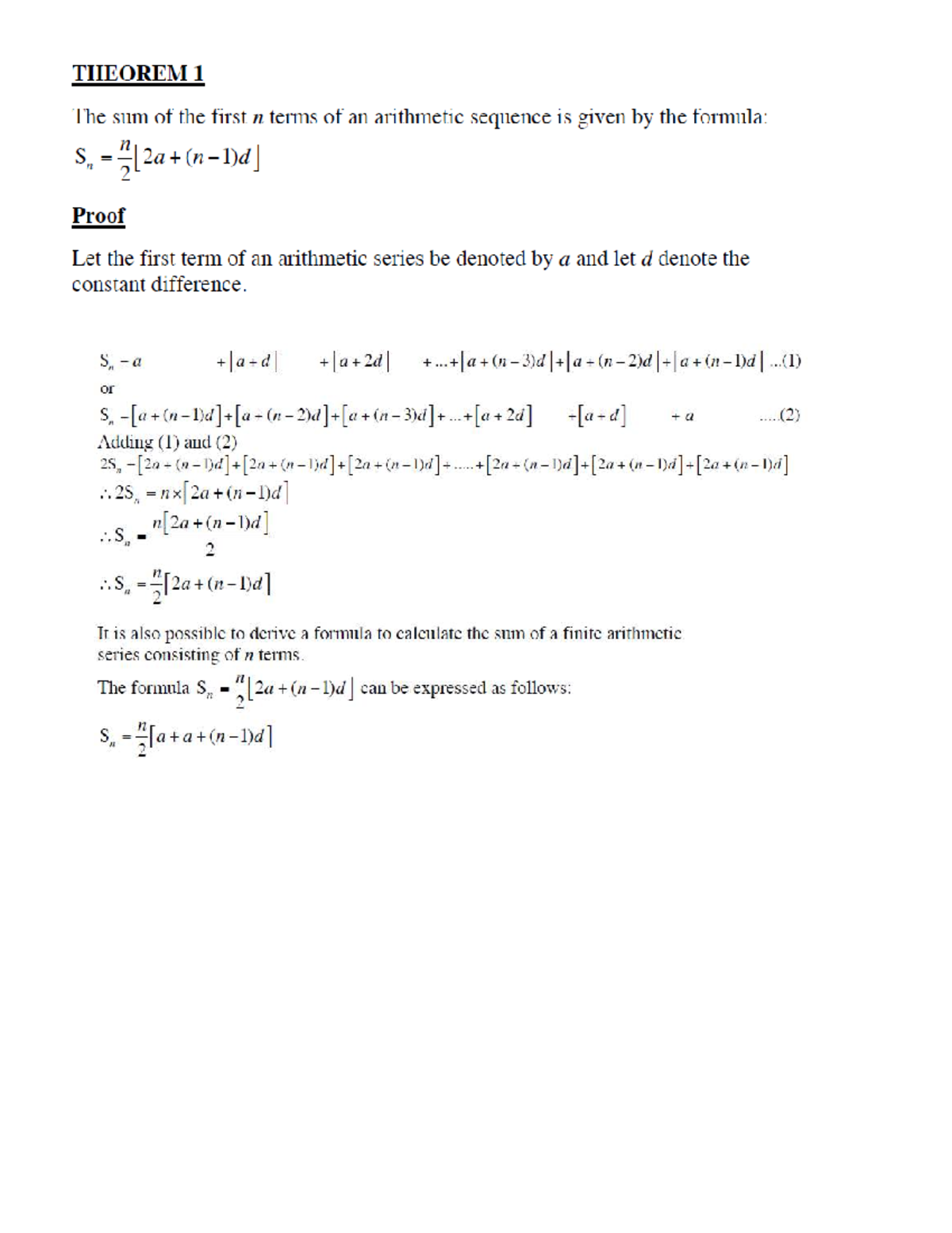 Proofs for Grade 12: Theorems on Arithmetic & Geometric Sequences - Studocu
