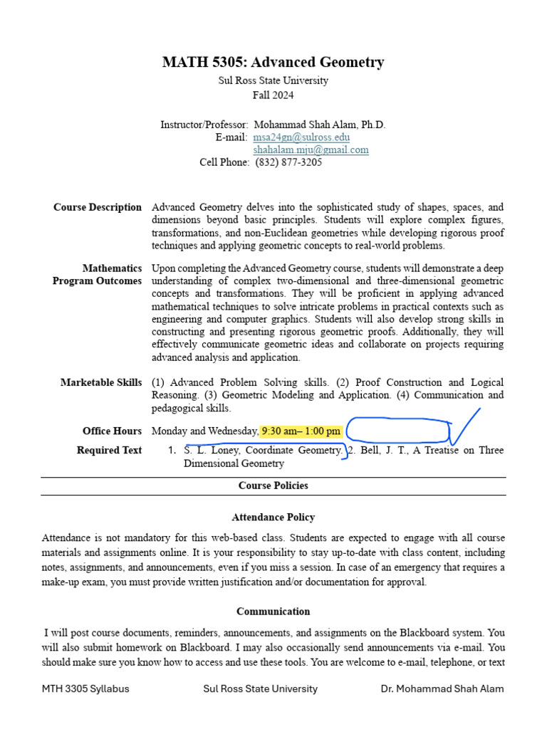 Syllabus MATH 5305 Advanced Geometry With Dates | PDF