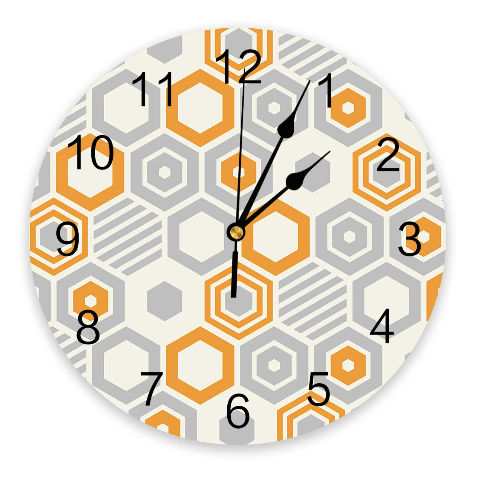 Art Hexagon Geometry Orange Grey Bedroom Wall Clock Large Modern ...