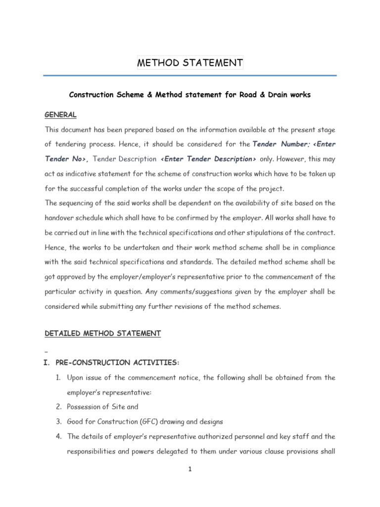 Method Statement Examples for Construction | Free Download