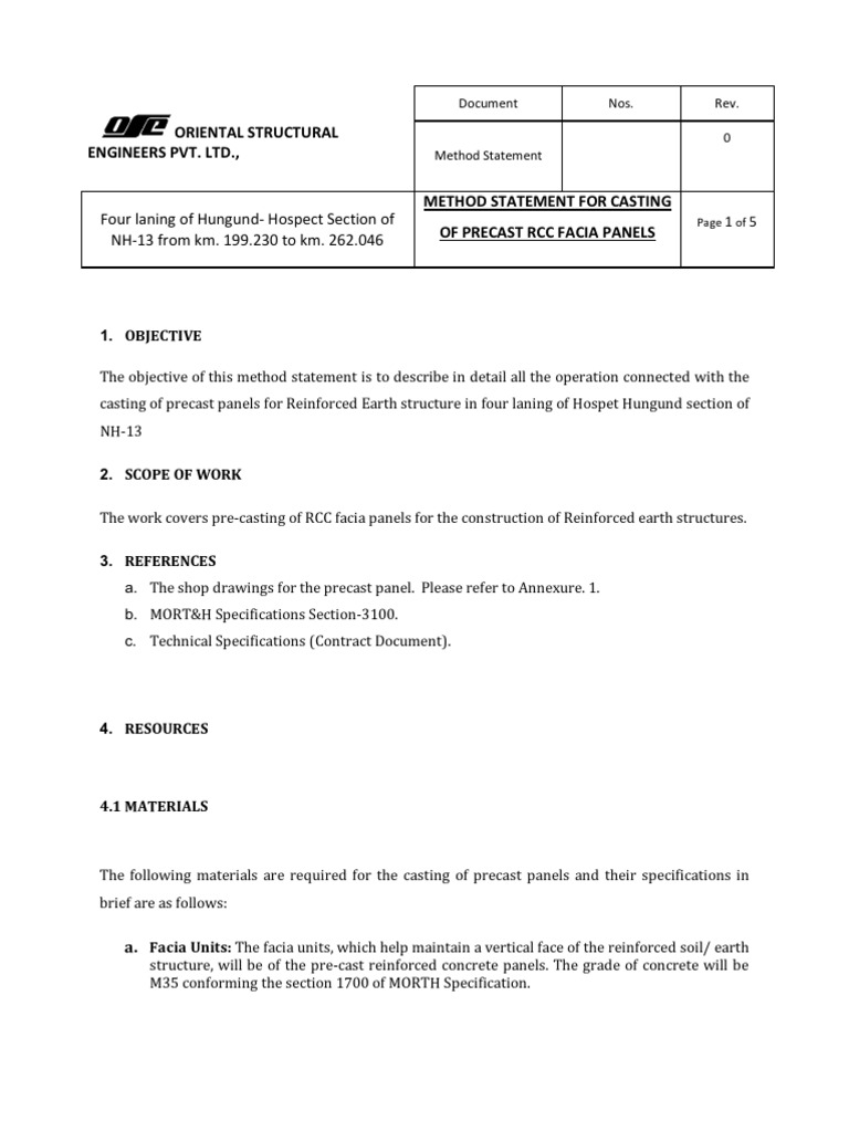 Method Statement - Sample | PDF | Concrete | Civil Engineering