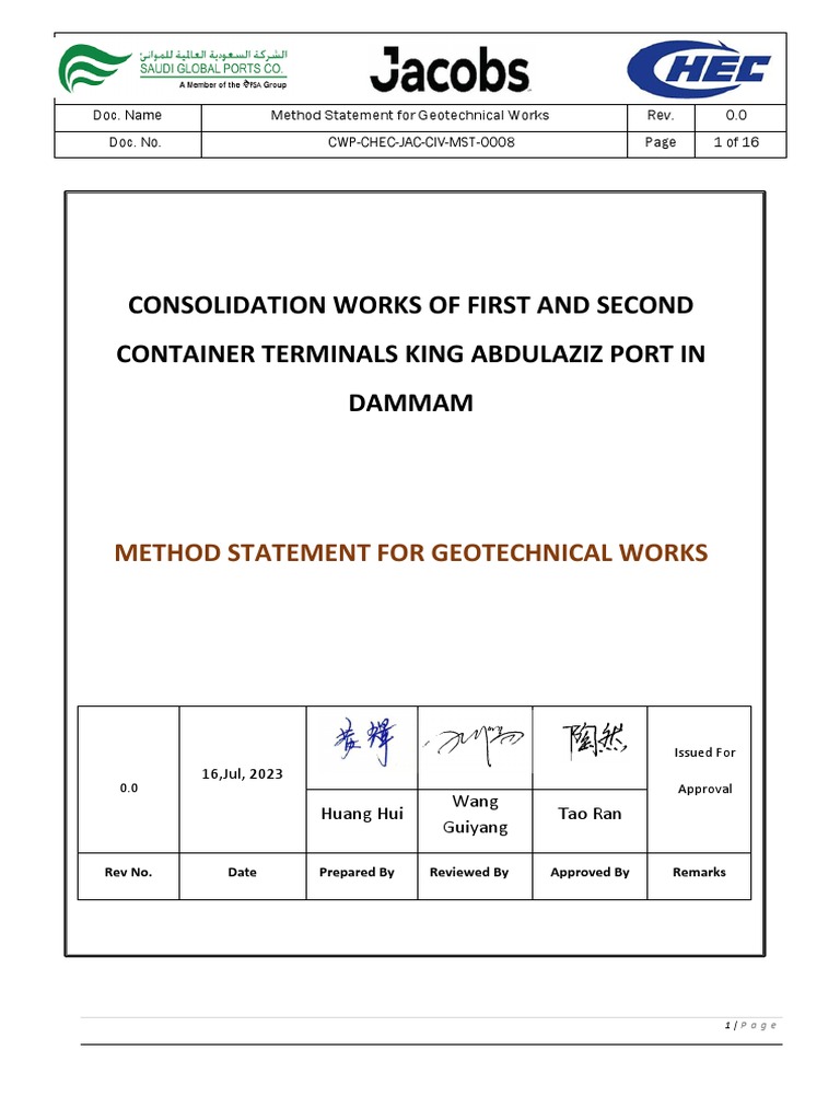 Method Statement For Geotechnical Works | PDF | Geotechnical ...