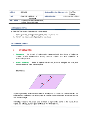 Detailed Lesson Plan in Geometry I .Objectives | PDF | Plane (Geometry ...