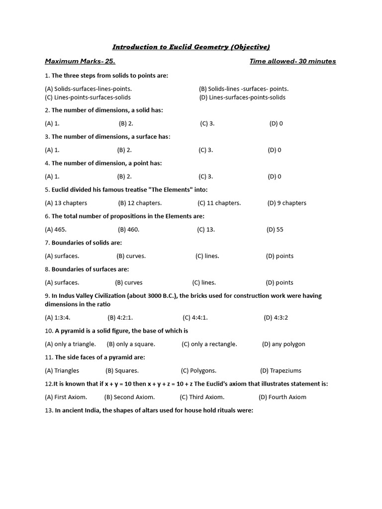 SOLUTION: Demonstrative geometry objective types questions - Studypool