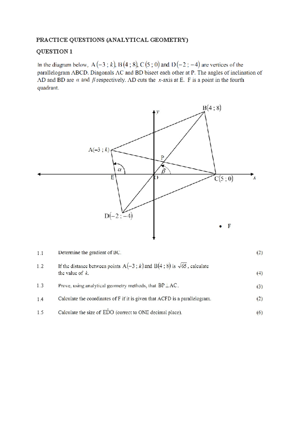 Practice Questions ( Analytical Geometry) - PRACTICE QUESTIONS ...