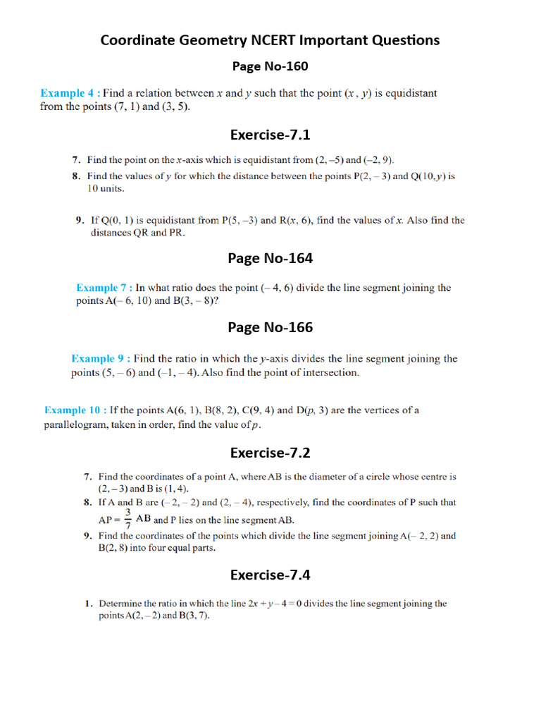 Important Coordinate Geometry Questions | PDF