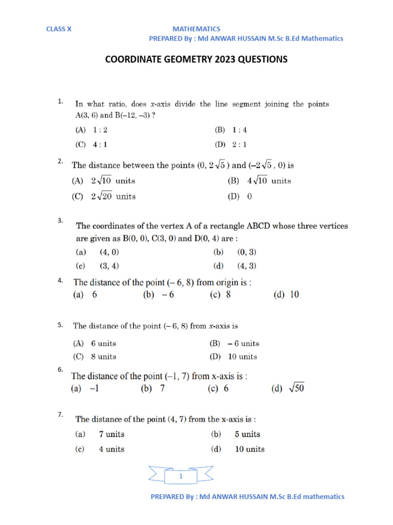 Class X Coordinate Geometry Questions | PDF | Mathematics | Geometry