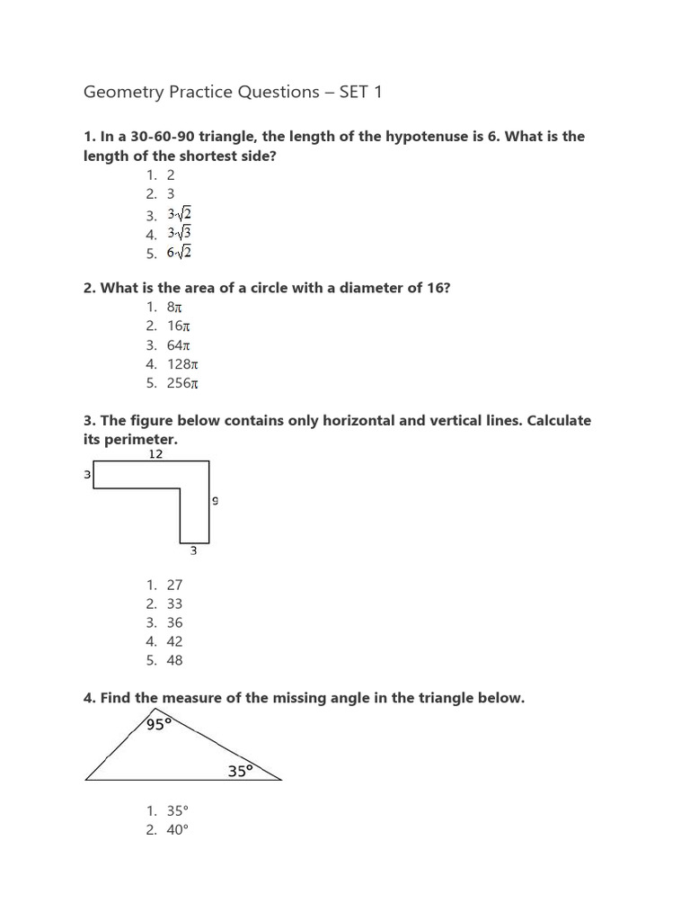 Geometry Practice Questions – SET 1 | PDF