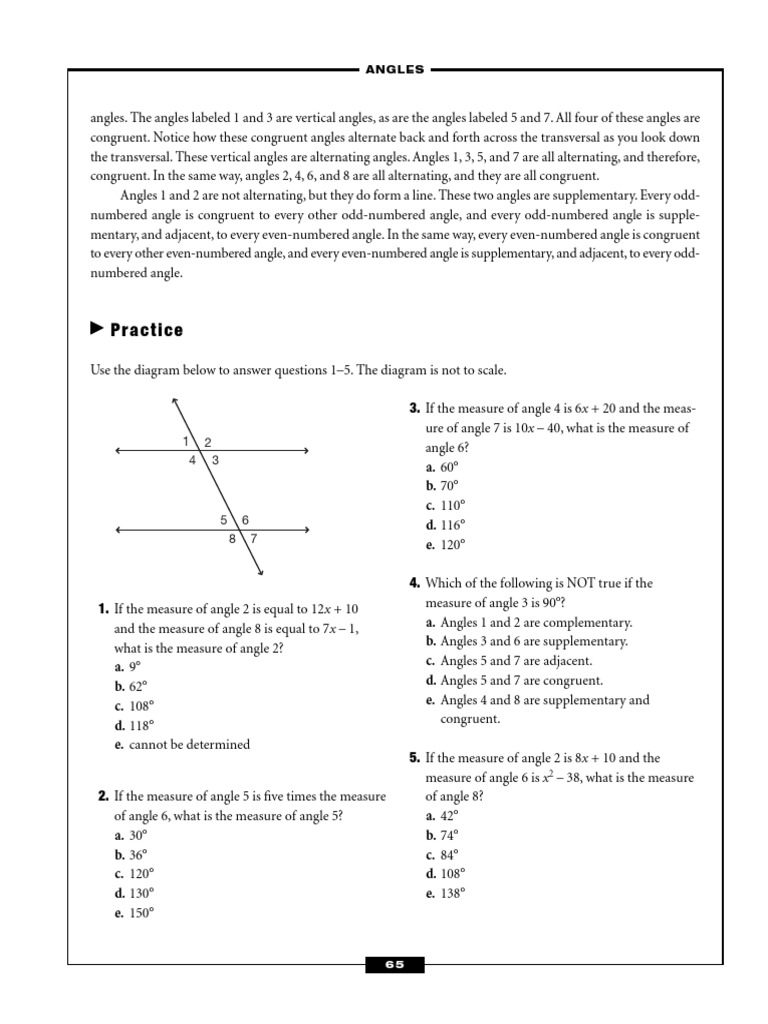 Lines And Angles Geometry Worksheet With Answers