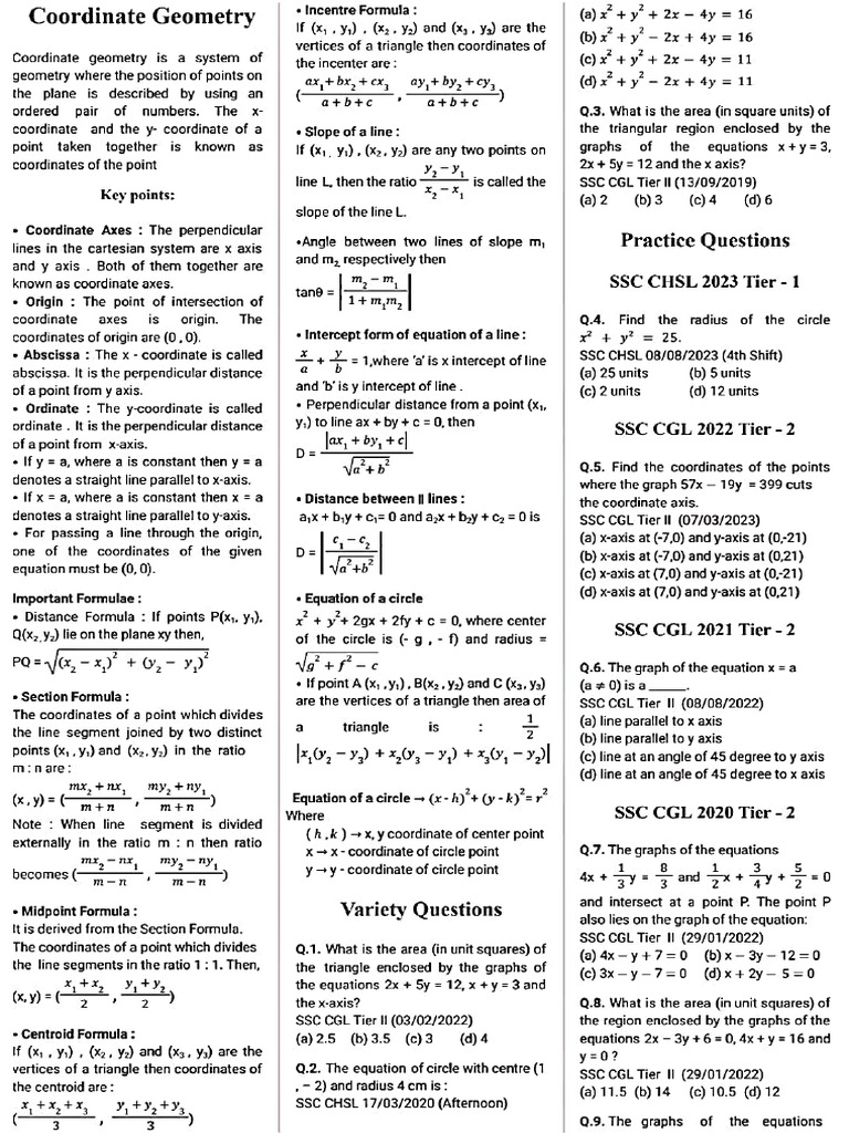 Math Practice Questions - Coordinate Geometry | PDF | Triangle ...