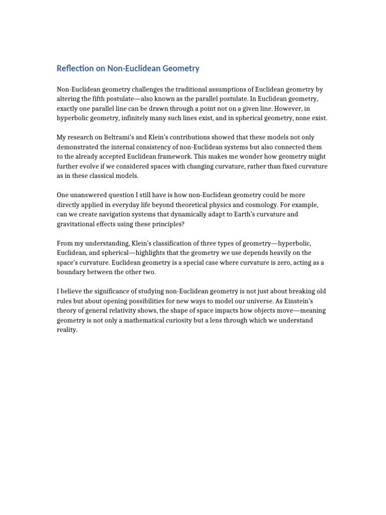 Non Euclidean Geometry Reflection No Image | PDF