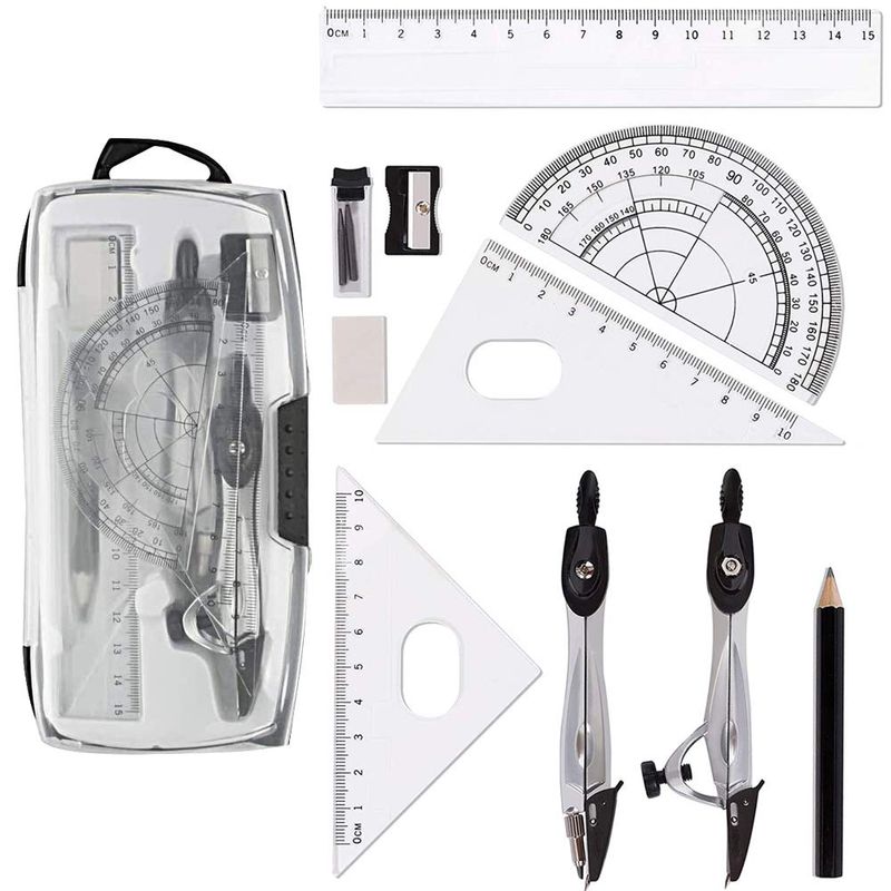12 Piece Drawing Set, School Math Compass Protractor Ruler Set for ...