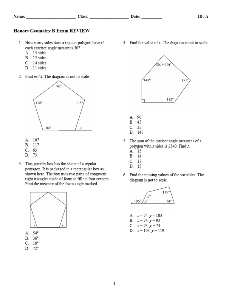 Exam Review (Answers Start PG 43) | PDF | Euclidean Plane Geometry ...