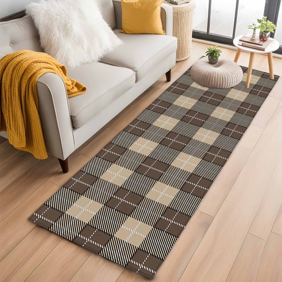 Area Rug 2x6ft Brown Check Plaid Carpets Indoor Floor Area Mat Washable ...