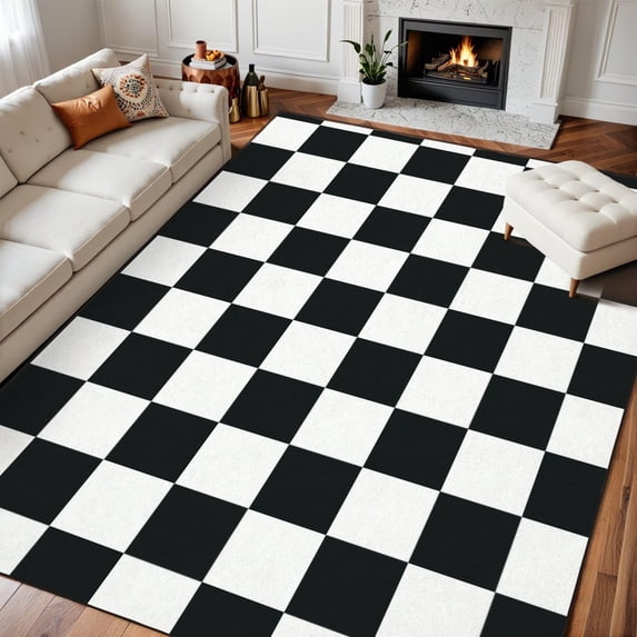 Black White Checkered Area Rug, Geometric Squares Pattern Carpet ...