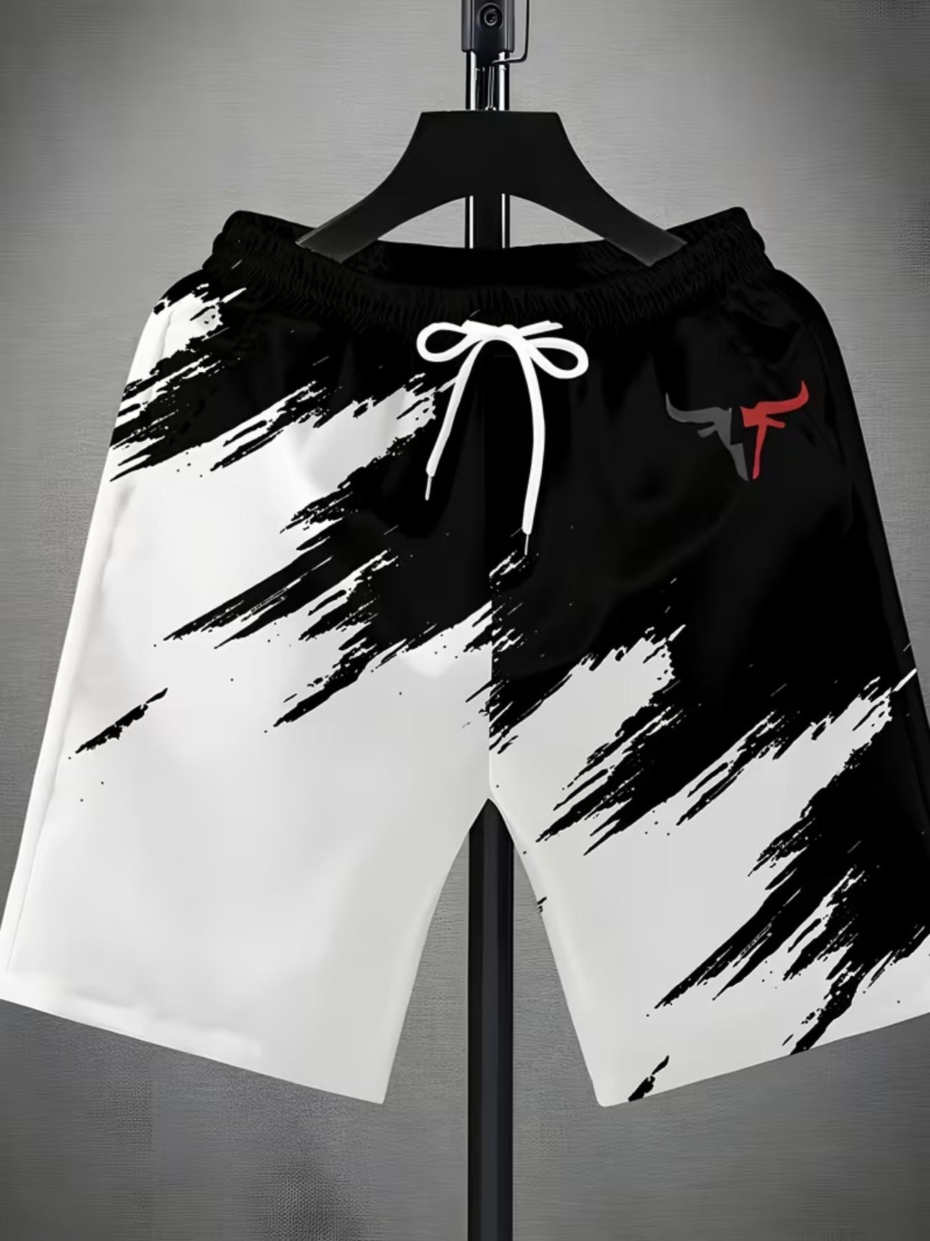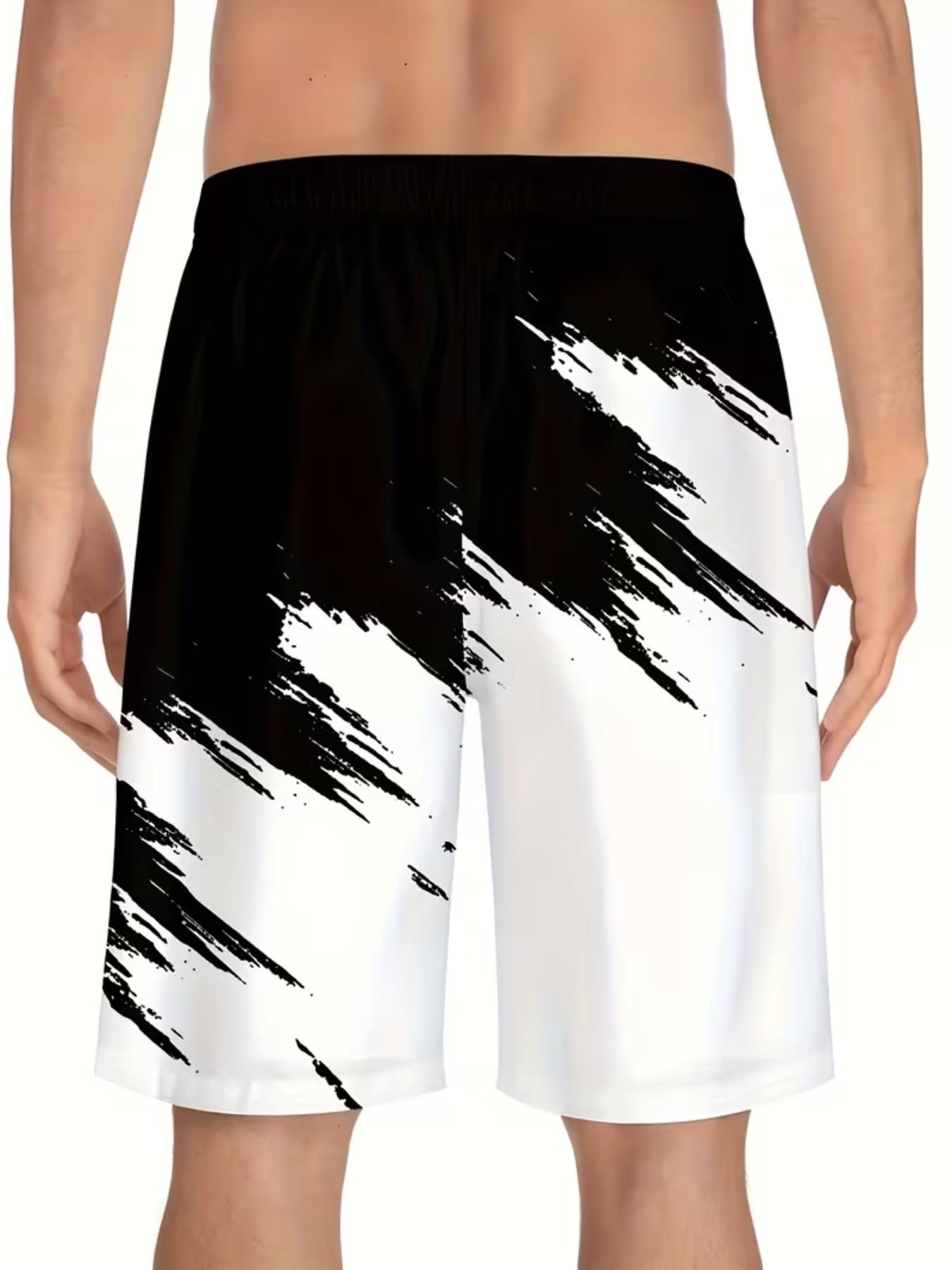 Men's Casual Fashion Geometric Pattern Shorts, Drawstring Waist Drop ...