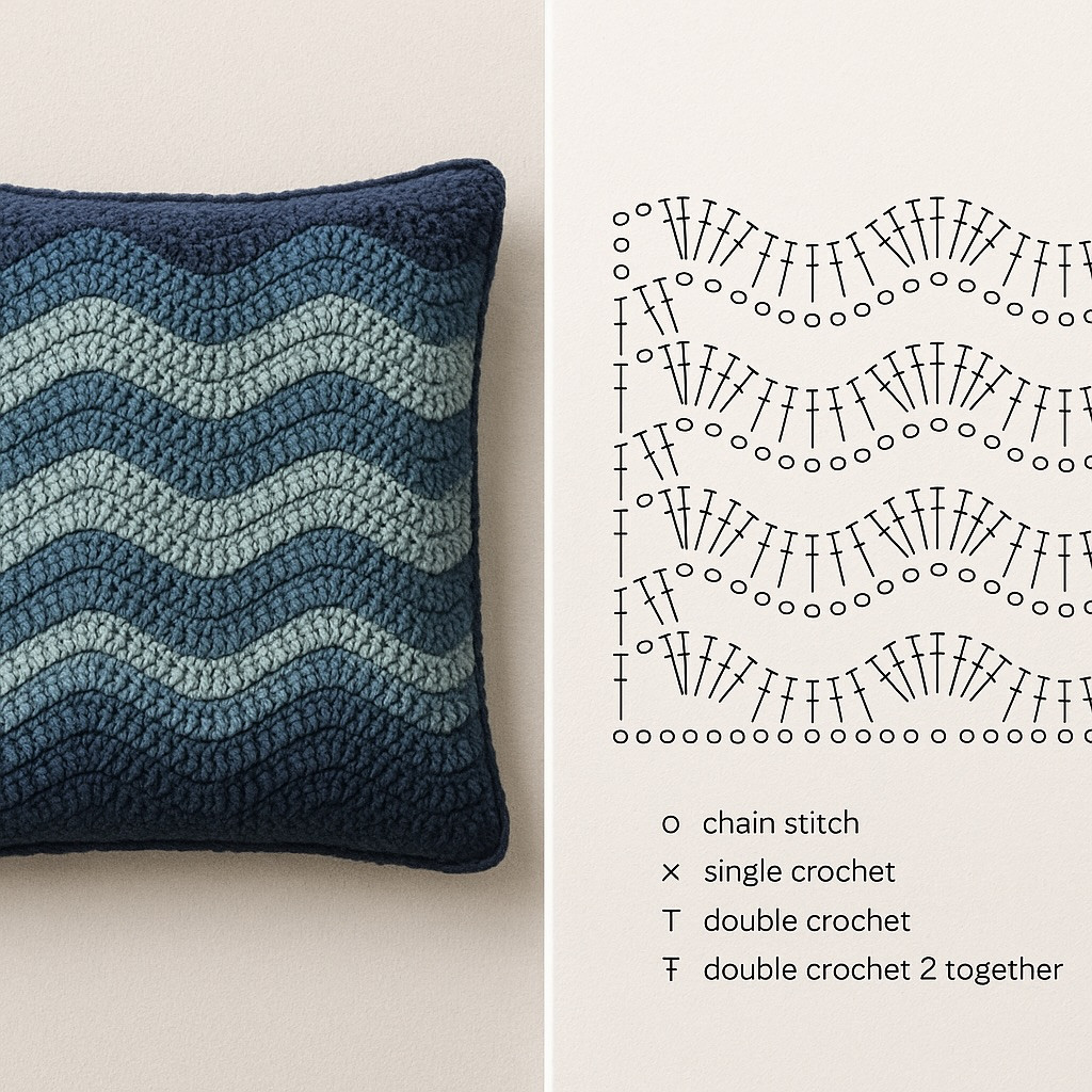 Geometric and Wave Pattern Crochet Pillow Charts with Symbols Legend ...