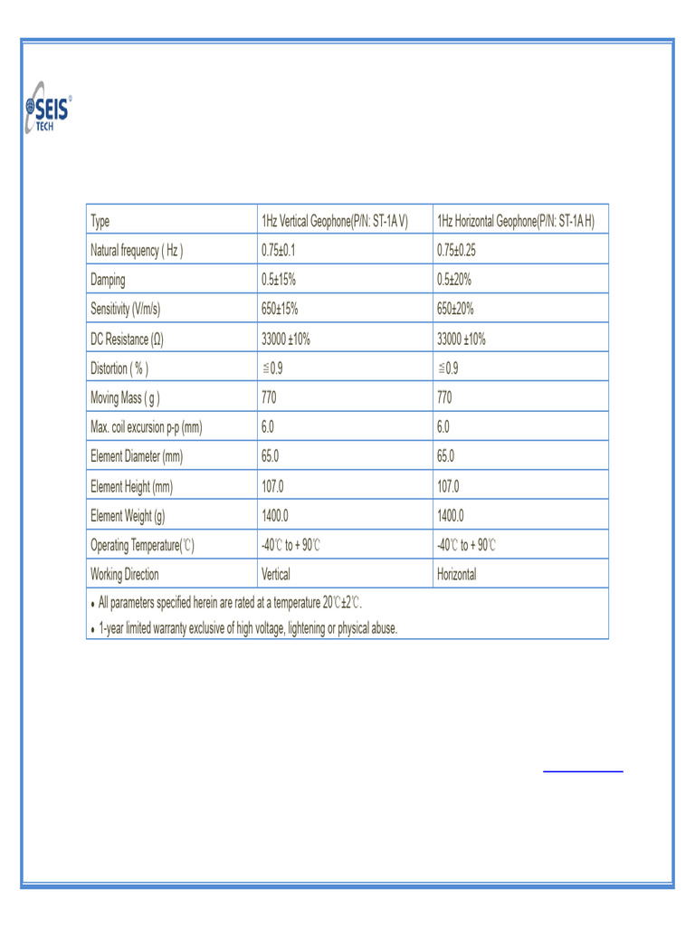 Data Sheet of 1Hz Geophone Sensor | PDF