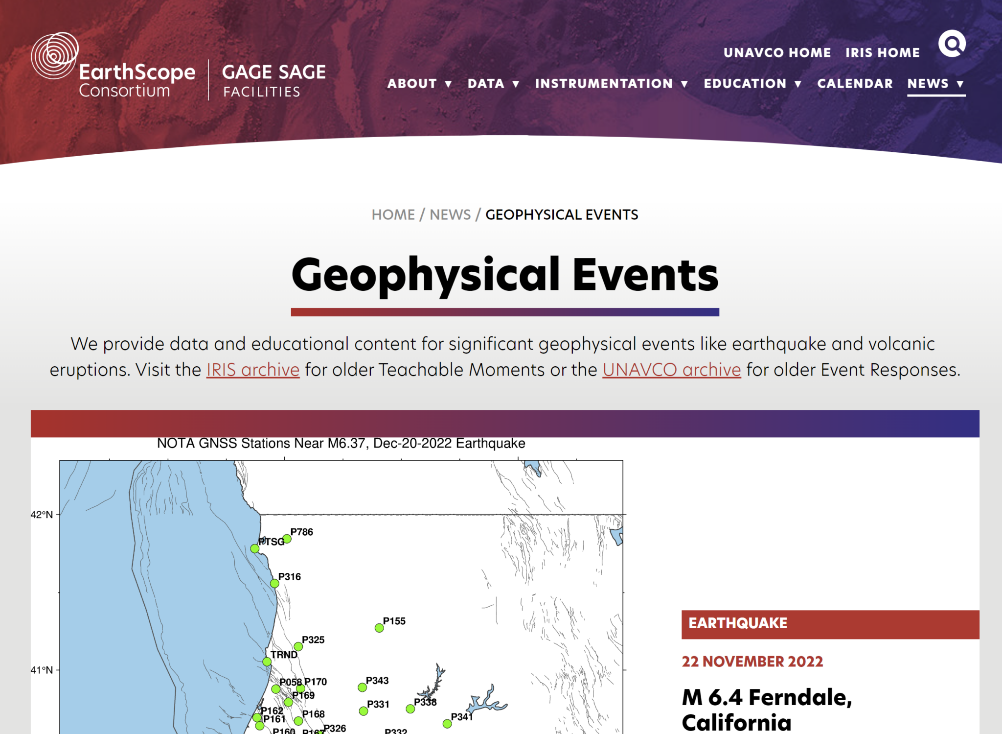 Geophysical Events | EarthScope Consortium