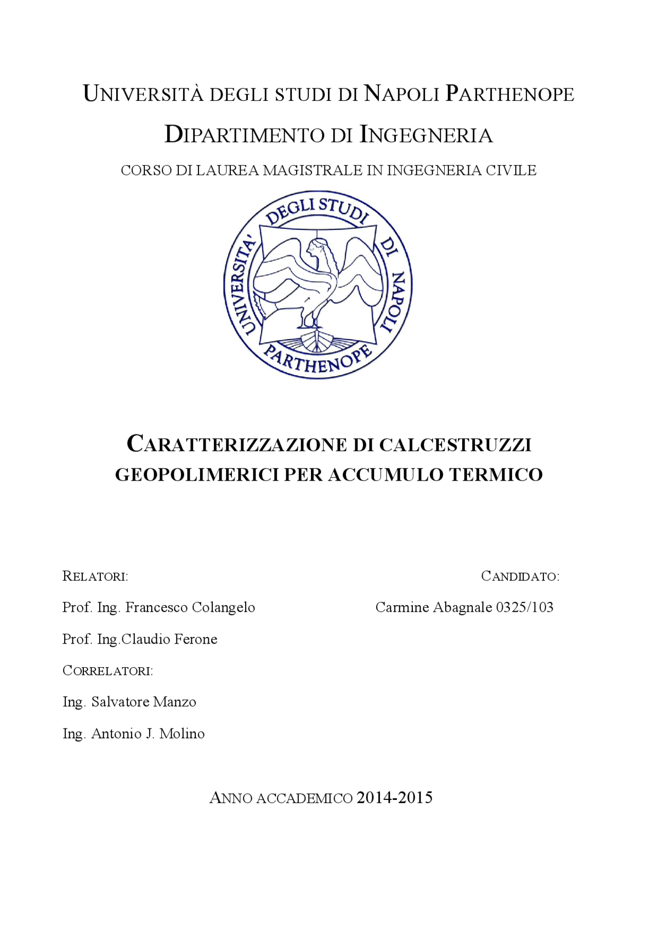 Caratterizzazione di geopolimeri per accumulo termico - Docsity