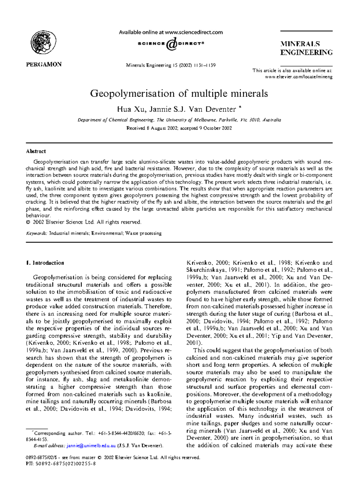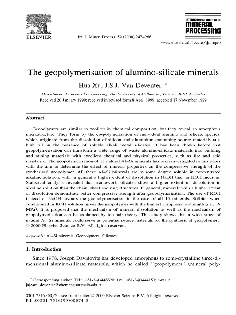 (PDF) Geopolymerisation: A review and prospects for the minerals industry